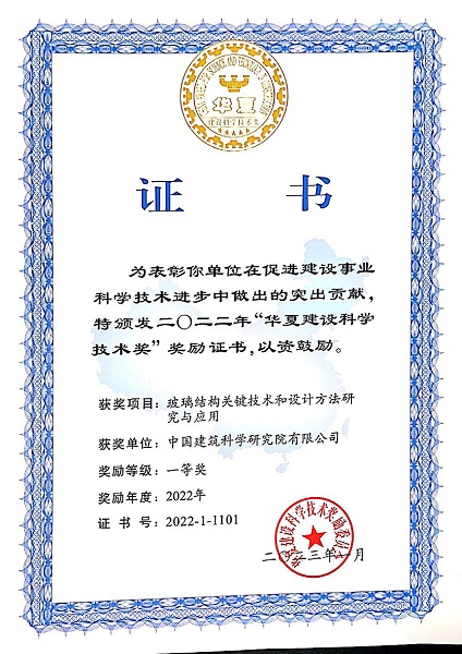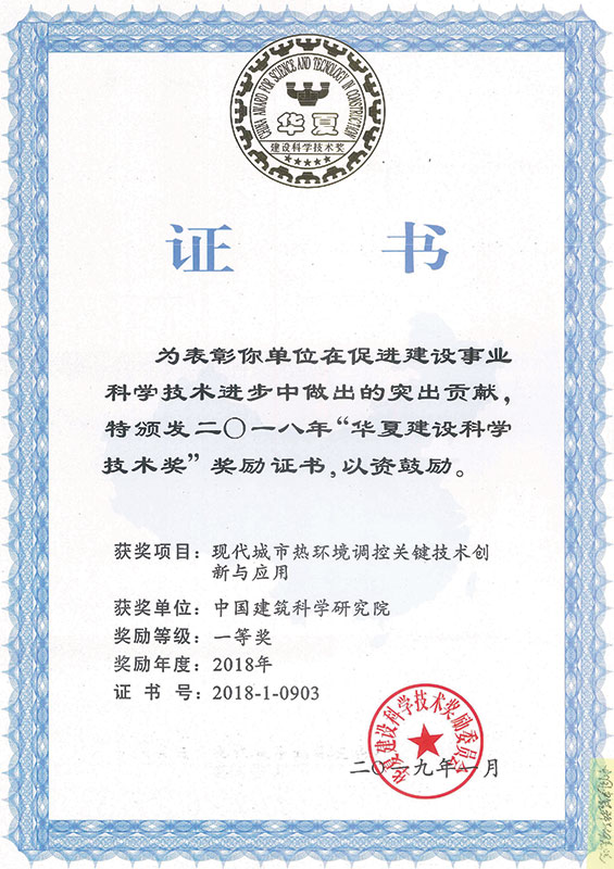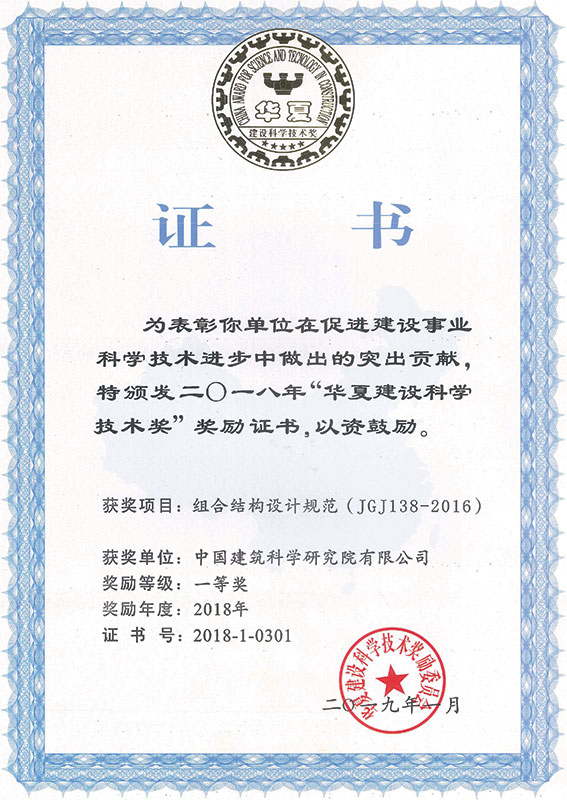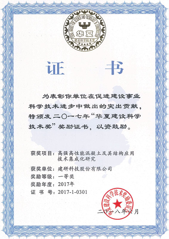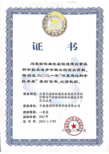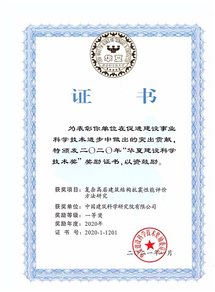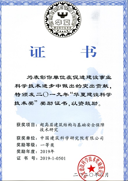 華夏建設(shè)科學(xué)技術(shù)獎(jiǎng)一等獎(jiǎng)