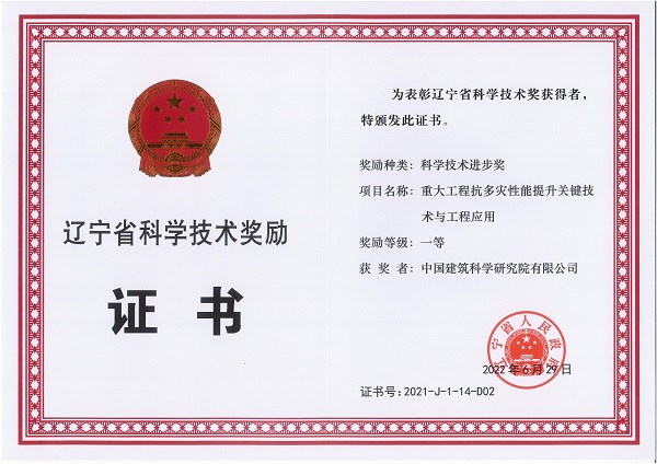 遼寧省科技進(jìn)步獎(jiǎng)一等獎(jiǎng)