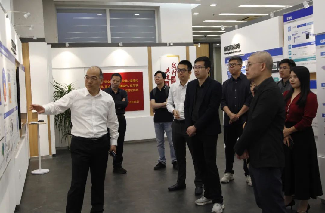 會前,趙松林一行參觀中國建研院展廳、構力科技數字化展廳,詳細了解中國建研院、構力科技在工程建設多領域國產BIM數字化、智能化、雙碳等方面的成果和應用。
