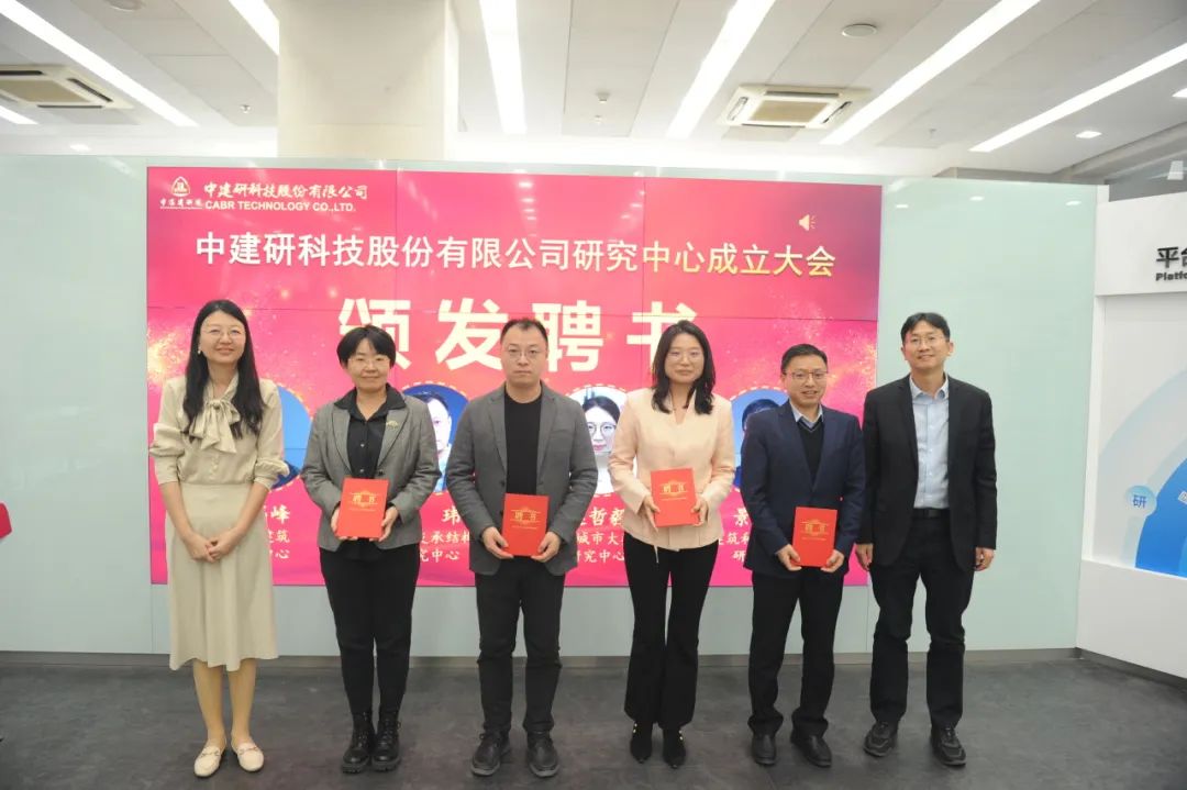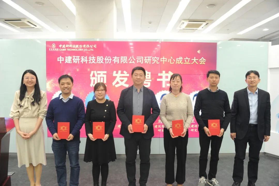 朱愛萍宣讀成立中建研科技研究中心決議。中建研科技共設立I類研究中心5個,II類研究中心14個。研究中心涵蓋建筑結構、更新與改造、建筑材料與產品、建筑工業化、建筑智能化、房屋體檢、固廢利用等方向,既覆蓋公司傳統業務領域,也為新時代建筑領域的發展布局籌謀。劉軍進、劉楓、程紹革為各研究中心主任頒發聘書。