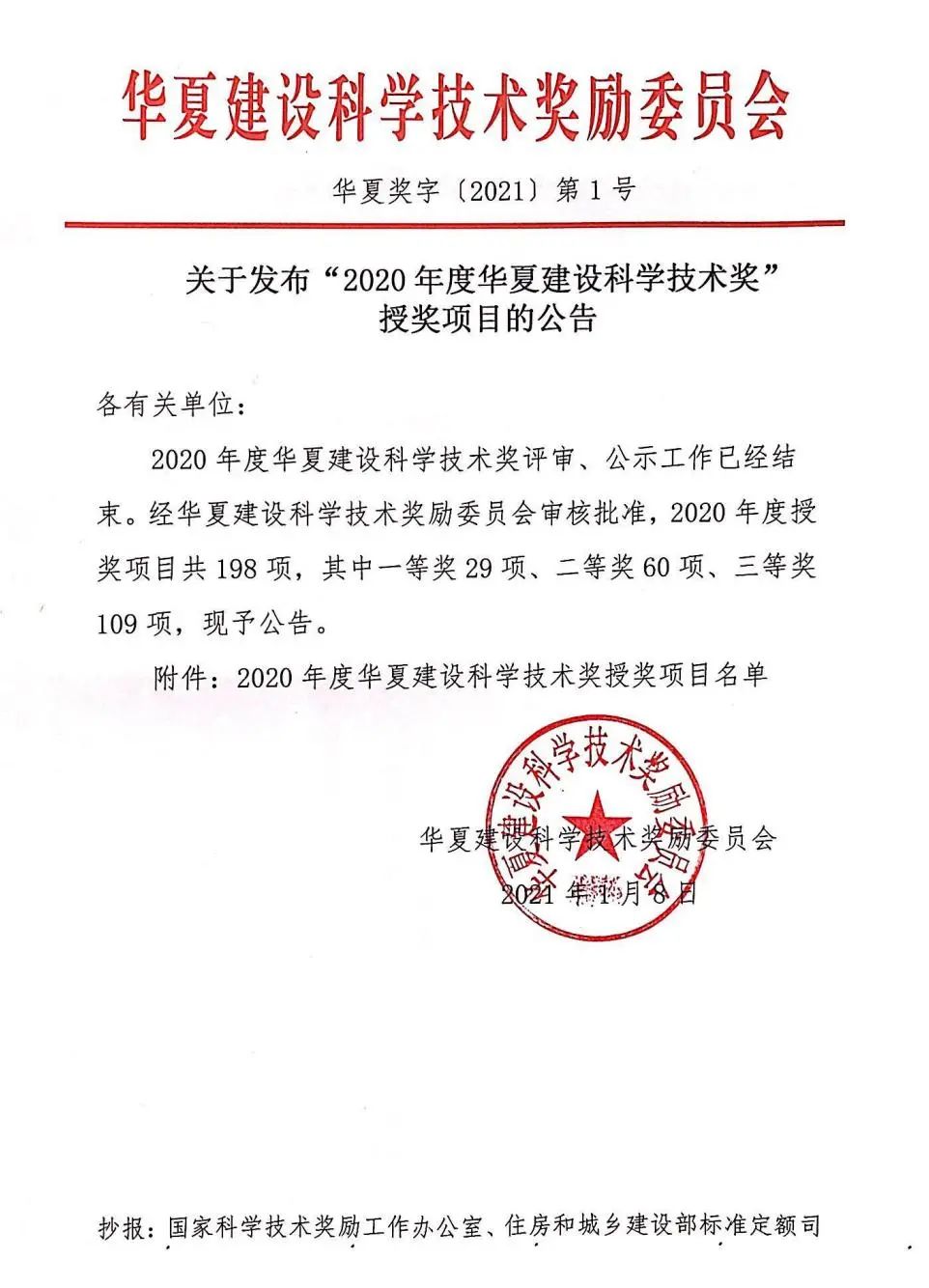 “2020年度華夏建設科學技術獎”授獎公告。