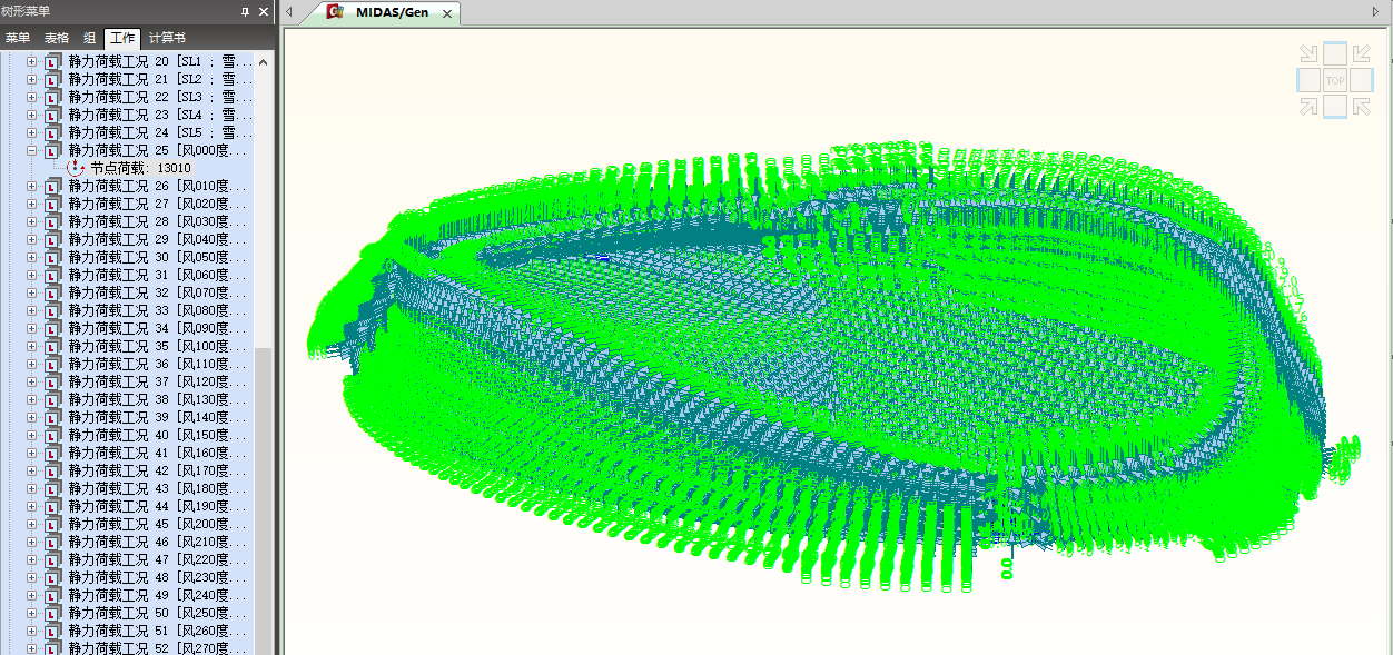屋頂結構采用單層索網結構形式為了合理準確地評估如此巨大的單層索網(屋蓋)在風荷載作用下的性能,以及圓管對幕墻局部的荷載影響。