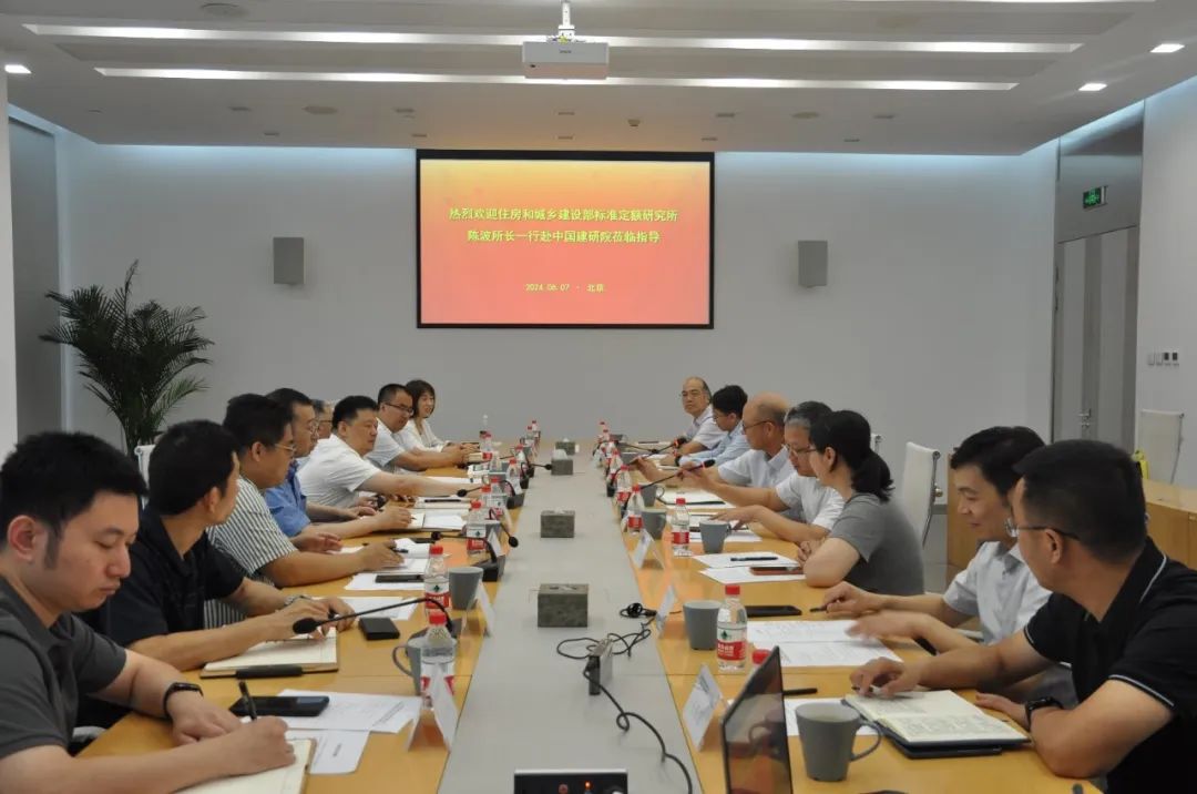 6月7日,住房城鄉(xiāng)建設部標準定額研究所陳波一行到中國建研院調研交流。標準定額研究所副所長施鵬、李大偉,城鄉(xiāng)建設產品標準處處長姚濤,信息出版處處長張宏,城鄉(xiāng)建設工程標準處副處長孫智、張惠鋒,以及有關部門負責同志參加調研,中國建研院黨委書記、董事長、總經理許杰峰,黨委委員、副總經理尹波,中建研科技黨委書記、董事長劉軍進,副總裁馬恩成等領導陪同調研。