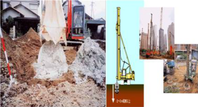 利用和尾砂膠結固化相似的技術思路和原材料,將固化劑與原位軟土通過機械拌合后形成具有足夠強度的固化土,從而達到地基加固的目的。