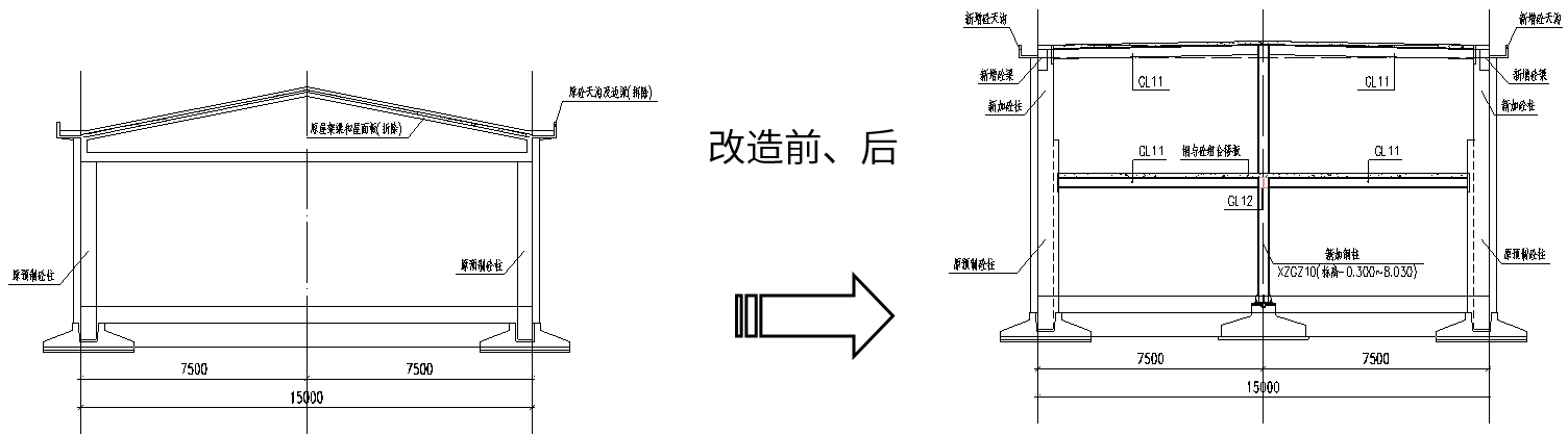 1.一體化承包、全過程服務:發揮多領域的綜合技術優勢,承擔了廠區的檢測鑒定、結構改造設計、加固改造施工、外立面施工及改造后評估的全過程服務。