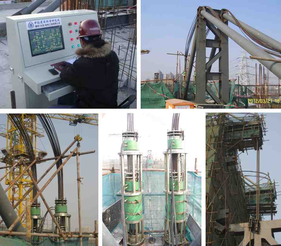 河北承德地區(qū)鋼鐵水泥廠擴(kuò)建的150m3高爐配套工程,容量500m3,高32m的倒錐形水塔是當(dāng)時(shí)國內(nèi)此類水塔中最高最大的水塔。塔柱直徑4m,采用了滑模施工;錐形水柜在地面預(yù)制。水柜的重量大,提升及安裝工作是本工程施工的關(guān)鍵。該工程采用以鋼絞線為吊索的液壓自動(dòng)提升裝置進(jìn)行水柜的提升,成功地完成了300t重的倒錐形水柜的提升和安裝工作,其水平安裝精度達(dá)到了驗(yàn)收標(biāo)準(zhǔn)。此法吊裝,具有提升速度快、作可靠、便于調(diào)整、減輕工人勞動(dòng)強(qiáng)度等,是當(dāng)時(shí)國內(nèi)首次應(yīng)用的新工藝新技術(shù)。